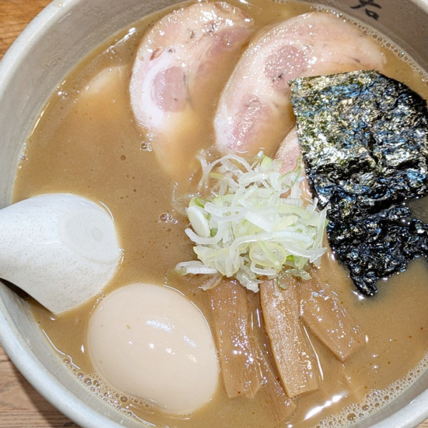 夫婦でやっており接客に定評がある。らーめんはWスープは流行りのタイプだがひと味違う。麺は太めのもっちり系の自家製麺。